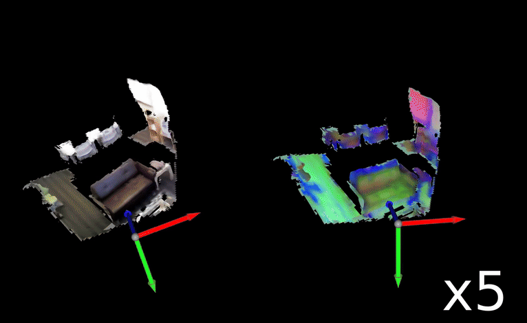 visualizer.visualize(color_mesh=color_mesh, feature_mesh=feature_mesh, camera_pose=pose)